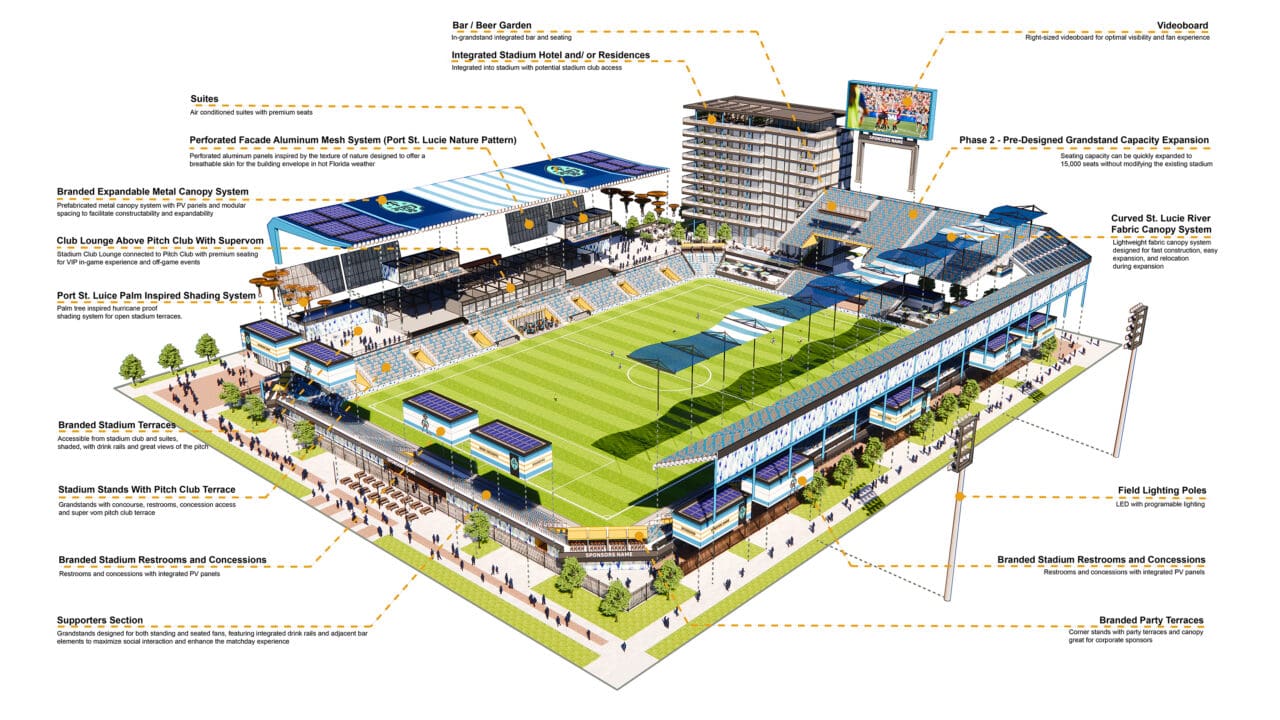 In Port St. Lucie, Florida, a stadium development is being delivered through a phased plan that aligns with a broader municipal parks and recreation initiative. The project is envisioned as a key contributor to a larger parks and recreation zone, with this development providing a substantial share of the athletic facilities, public amenities, and supporting infrastructure. By coordinating private investment with public planning, the project delivers immediate community benefits while establishing a scalable and financially responsible framework for long-term growth.