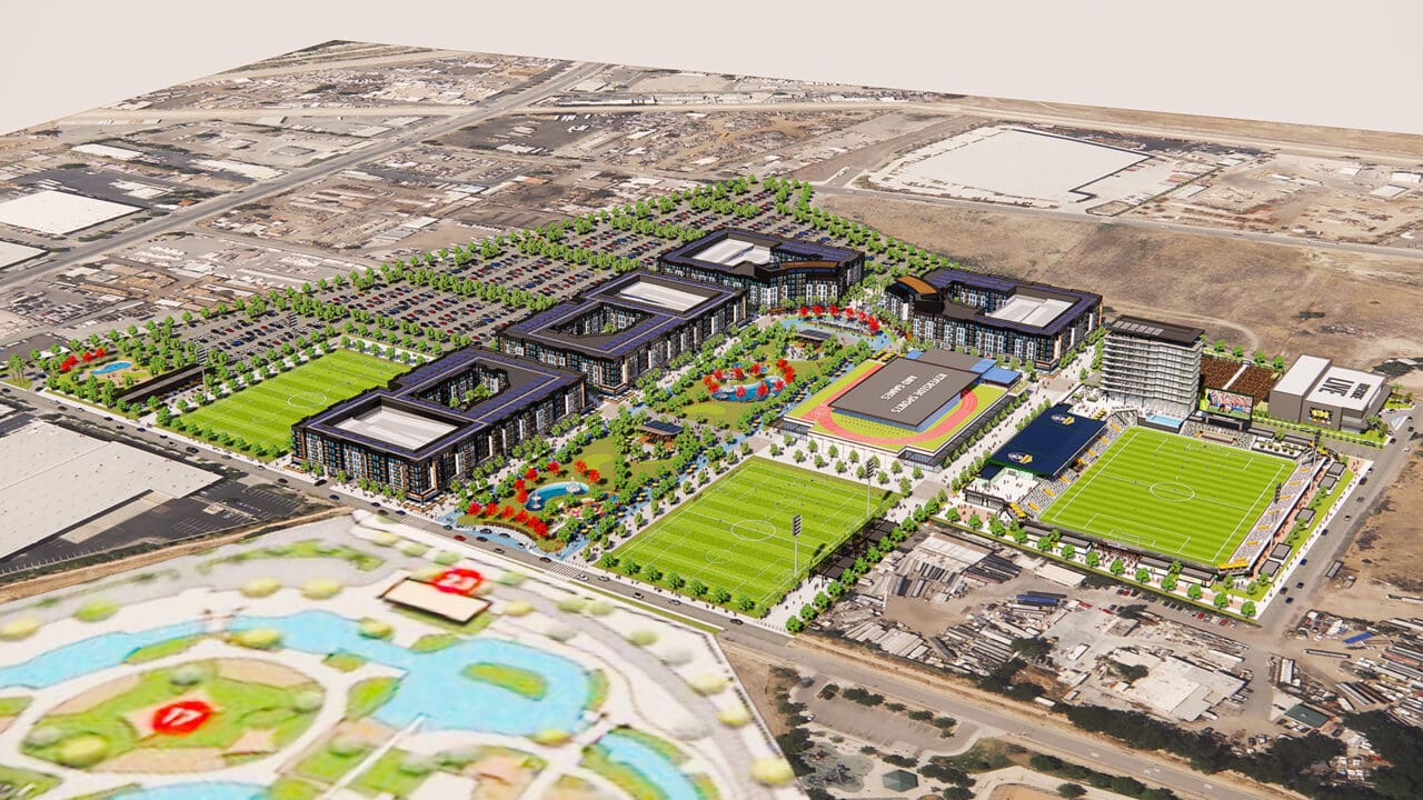 In Riverside, California, this approach is transforming a long-derelict floodplain site into a vibrant sports and entertainment district. In one coordinated effort, the project will deliver an active public park, athletic fields, a multi-sport stadium, a music and entertainment venue, and both below-market-rate and market-rate housing to address long-standing community needs. Equally important, the development incorporates infrastructure and environmental strategies that mitigate floodplain challenges and reduce downstream impacts. What was once an underutilized liability will become a resilient community asset that balances recreation, housing, entertainment, and environmental responsibility.