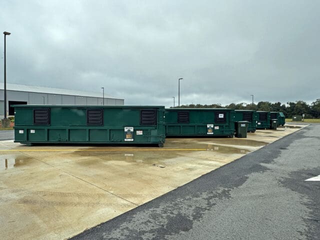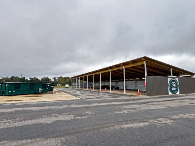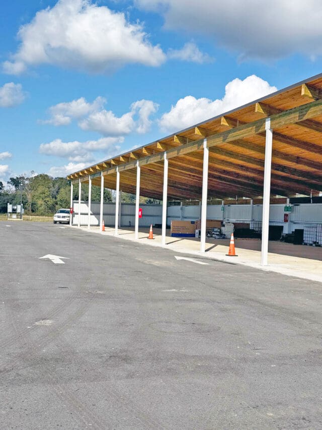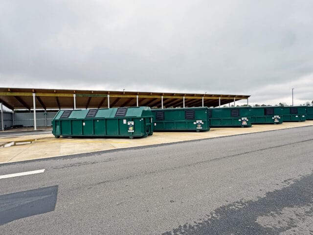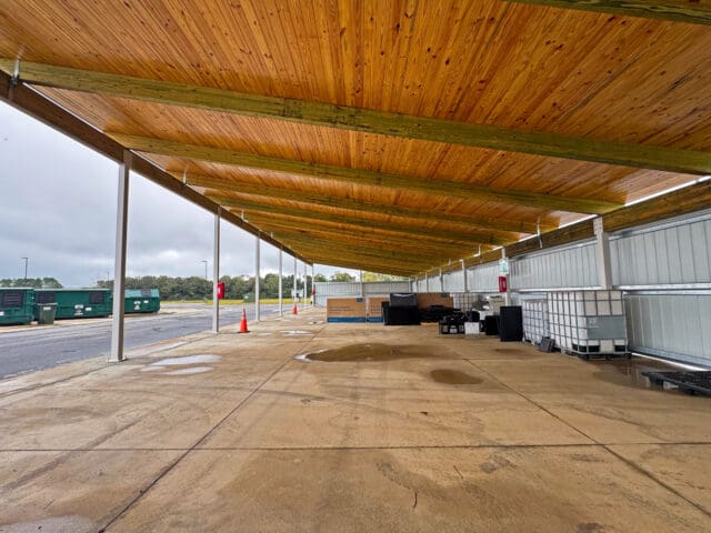 Visitors can pull directly through the center, dropping off cardboard, plastic, and metal on one side, while electronics, household liquids, batteries, and other hard-to-recycle items are accepted under the covered area on the opposite side. With dedicated green bins and clearly marked lanes, the CHaRM facility streamlines the recycling process and helps ensure these materials are handled safely and sustainably.