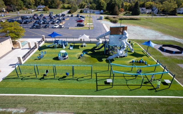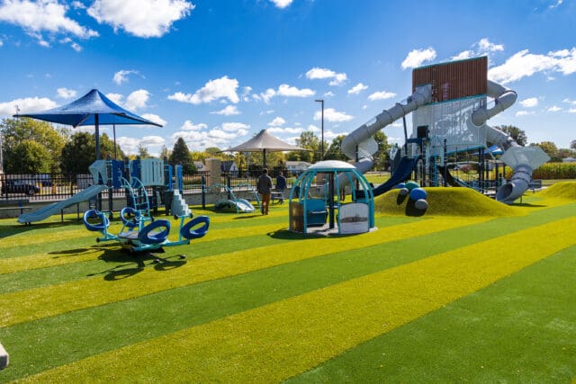 Turf replaced woodchips as the play surface, providing a cleaner, safer, and more accessible experience.