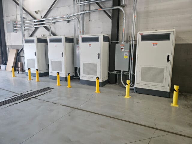 To power and protect these operations, the project included 12 DC fast (Level 3) electric bus chargers, four dual Level 2 chargers, a new 150-kilowatt power cabinet, electrical infrastructure upgrades, and a 400-kilowatt emergency backup generator—ensuring UCAT can continue operating up to 15 vehicles even during grid outages.