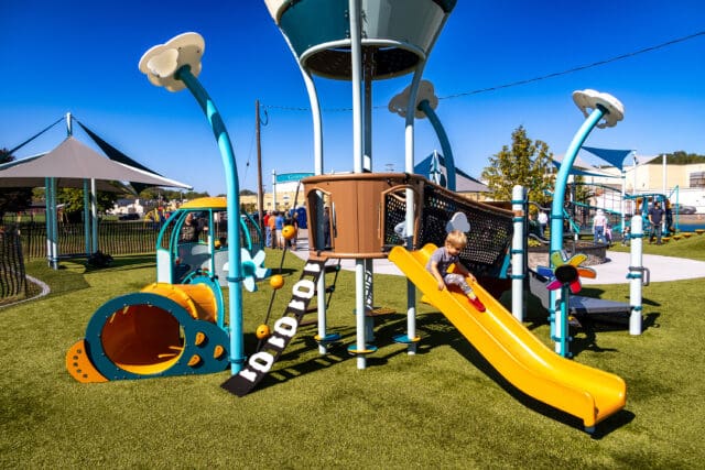 On November 2, 2023, a ribbon cutting ceremony was held to celebrate the grand opening of the newly completed Union Square Park.